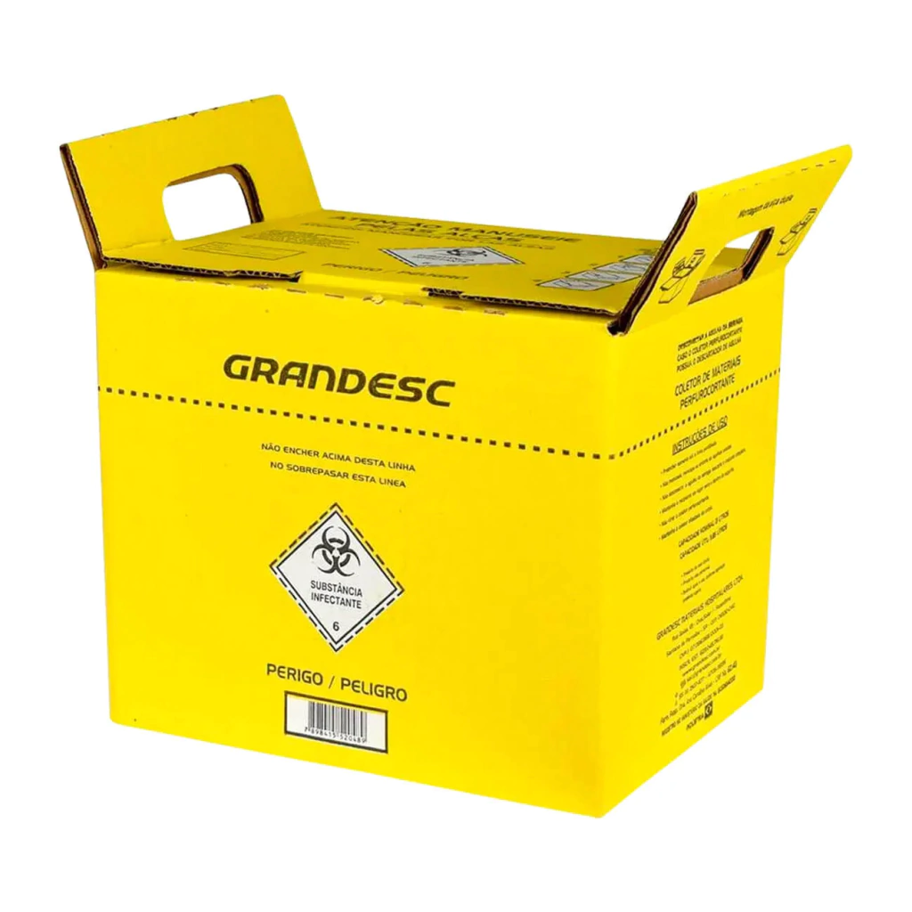Desenvolvido para descartar materiais que cortam ou perfuram, provenientes das ações de atenção a Saúde, com carga potencialmente infectante. Possui bocal aberto para facilitar o descarte dos materiais, sem necessidade de abrir e fechar tampa.